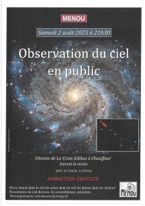 Culture et loisirs, Vie communale Animation observation du ciel le 02/08 27/07/2025 Véronique RAVAUD Laisser un commentaire